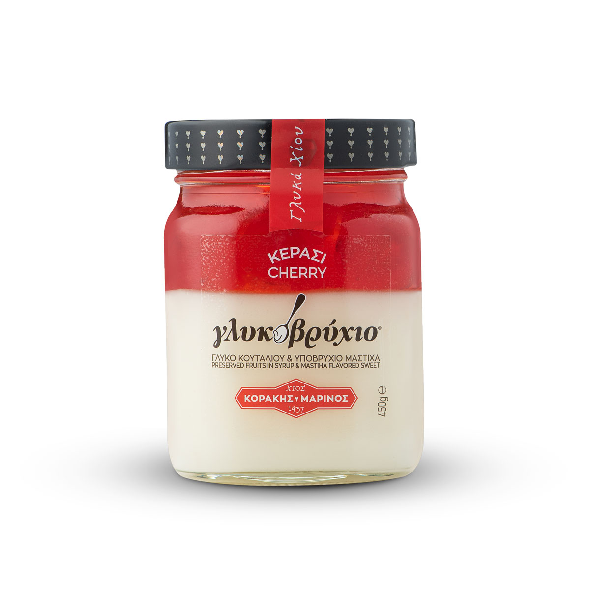 Συστατικά: Μαστίχα γλυκό (69%): Ζάχαρη (55%), Σιρόπι Γλυκόζης (περιέχει θειώδη), Νερό, Αρωματική ύλη: Μαστιχέλαιο Χίου (0,03‰). Κεράσι γλυκό (31%): Κεράσι (50%), Ζάχαρη, Σιρόπι Γλυκόζης, Μέσο οξίνισης: Κιτρικό οξύ, Συντηρητικό: Σορβικό Κάλιο (έως 0,1%), Χρωστική: Καρμίνιο, Αρωματικές ύλες. Το εργοστάσιο επεξεργάζεται και καρπούς με κέλυφος.