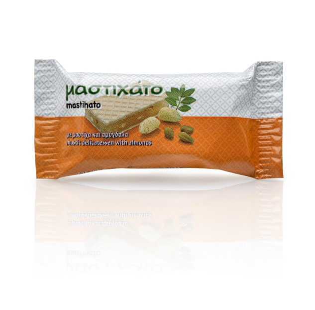 Ingredients: Sugar, maize strach, strach syrup, Wafer [water, wheat flour (contains gluten), sugar, palm oil, maize strach, soy leathun, salt, flavoring,] almond 4%, citric acid, mastic 0.5%.